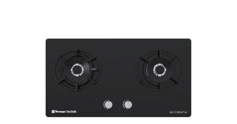 75 cm Glass Hob, 2 Gas Burners, Cast Iron Pan Support, Sabaf Burners, Black Tempered Glass