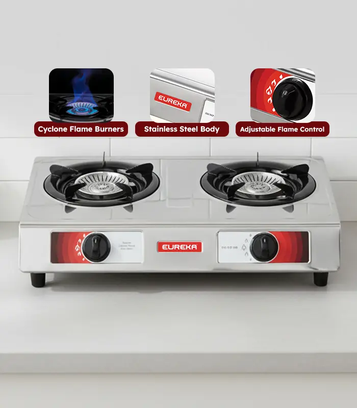 • Cyclone Flame Burners• Stainless Steel Body• Corrosion-Resistant Trivet• Automatic Ignition• Powerful Flame Control• Anti-Skid Base