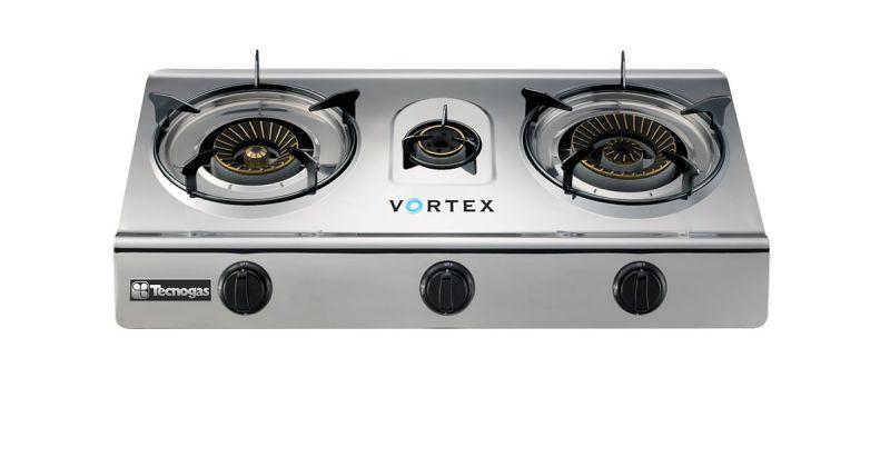 3 Gas Burners Stove, Blue Flame, Brass Burners, Direct Vortex Flame, Cast Iron Pan Support, Full Stainless Steel