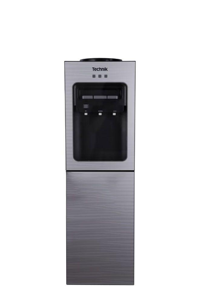 Technik Free Standing Water Dispenser, Top Load, Front Glass Cover, Silver Tempered Glass Design